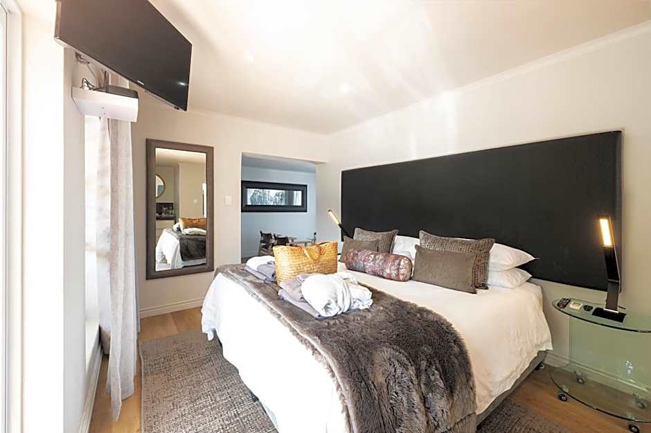 Located on the top floor, this suite opens onto a large shared balcony with views of the Indian Ocean and the scenic Outeniqua Mountains.